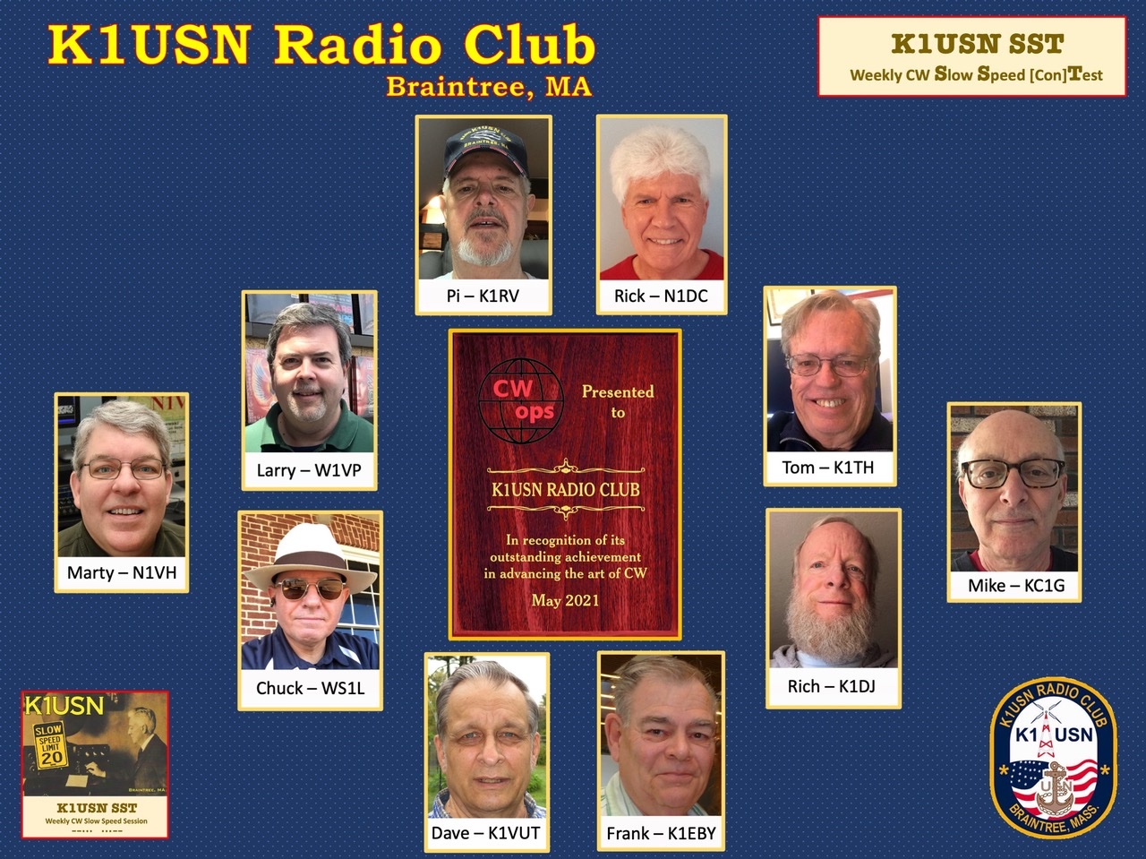 CWops recognition award to the K1USN Radio Club for outstanding achievement in advancing the art of CW, May 2021.